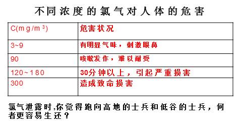 氯气泄露时,你觉得跑向高地的士兵和低谷的士兵,何者更容易生还?