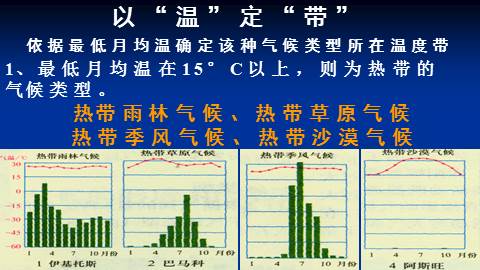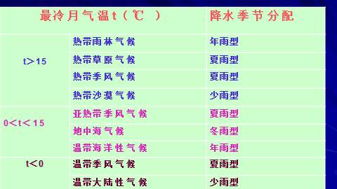 1、最低月均温在15XXXXXC以上,则为热带的气候类型。