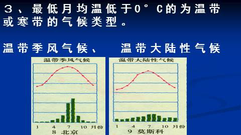 3、最低月均温低于0XXXXXC的为温带或寒带的气候类型。