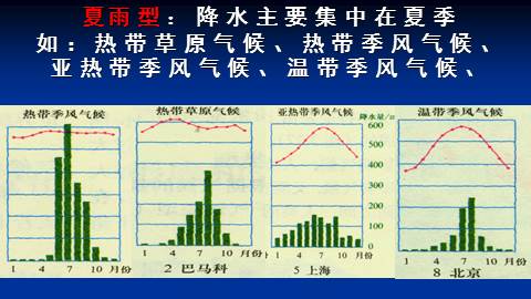 夏某某:降水主要集中在夏季如:热带草原气候、热带季风气候、亚热带季风气候、温带季风气候、