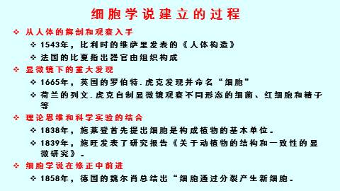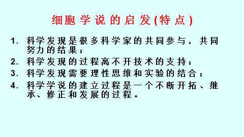 1858年,德国的魏尔肖总结出“细胞通过分裂产生新细胞。细胞学说的启发(特点)科学发现是很多科学家的共同参与,共同努力的结果;