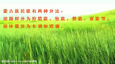 按题材分为狩猎歌、牧歌、赞歌、宴歌等;