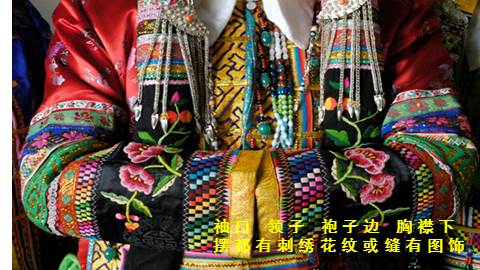 袖口 领子 袍子边 胸襟下摆都有刺绣花纹或缝有图饰