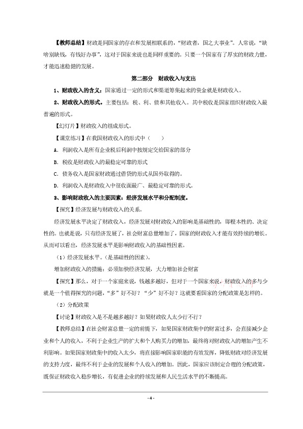 (1)通过分析影响财政收入的因素,培养学生的辨证思维能力。