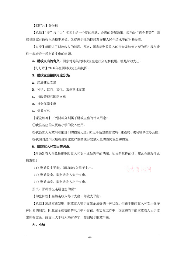 (1)知道财政包括财政收入和财政支出,懂得如何确立财政收支的合理关系。