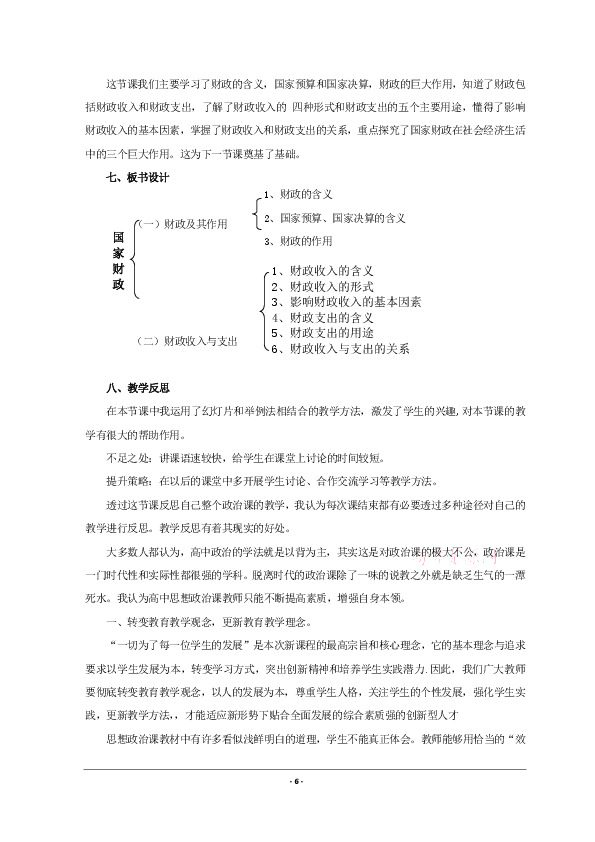 (2)通过分析财政收入和支出的具体数据,大型工程的投资等资料,归纳财政的作用,使学生更好地掌握分析与综合的思维方法。