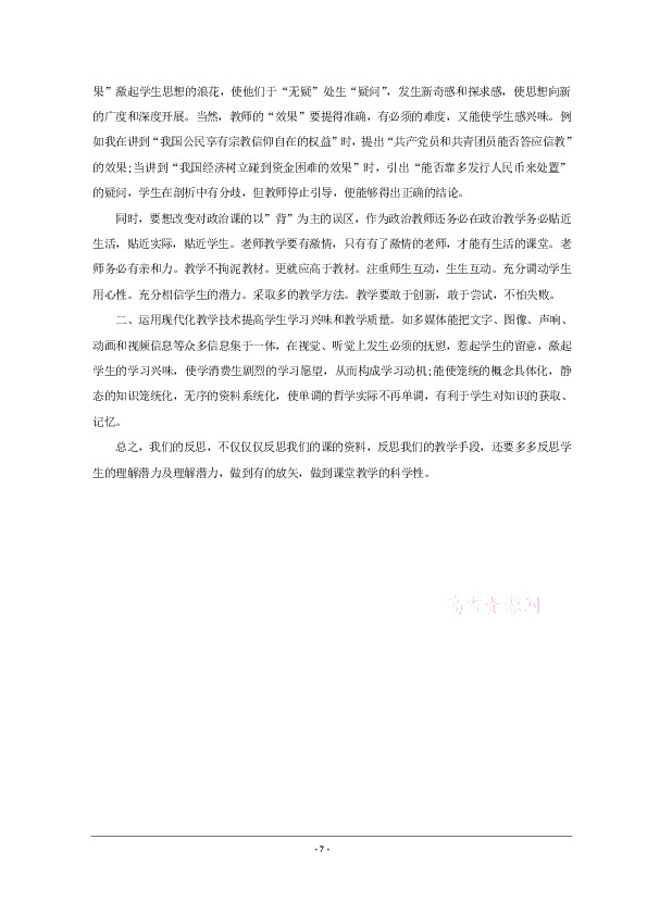 总之,我们的反思,不仅仅仅反思我们的课的资料,反思我们的教学手段,还要多多反思学生的理解潜力及理解潜力,做到有的放矢,做到课堂教学的科学性。