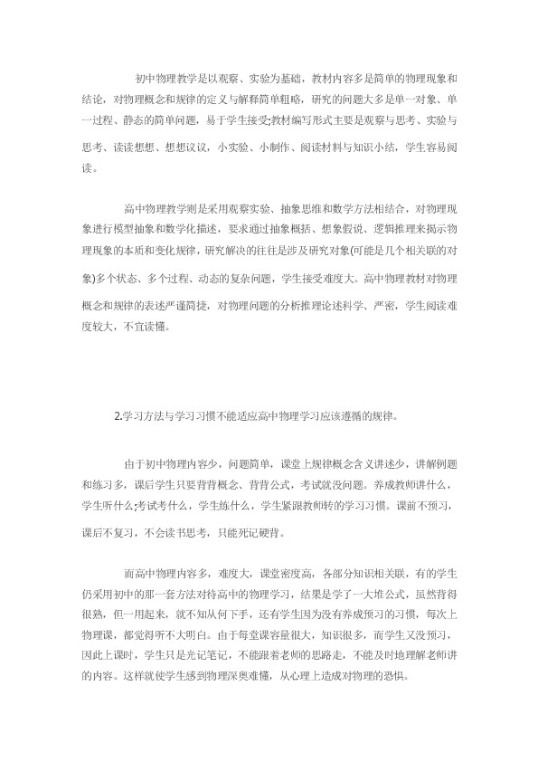 2.学习方法与学习习惯不能适应高中物理学习应该遵循的规律。