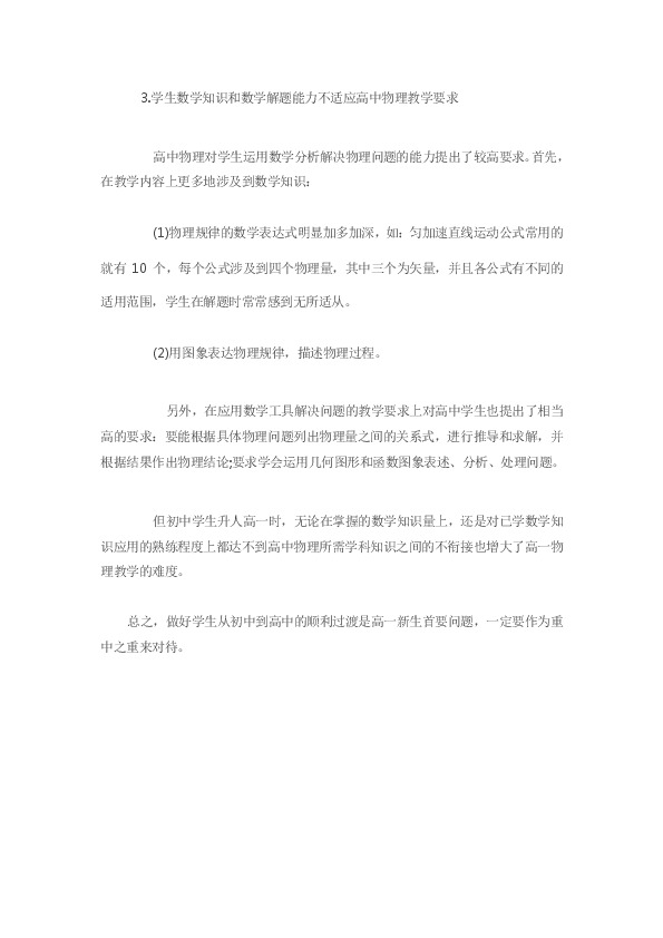 3.学生数学知识和数学解题能力不适应高中物理教学要求