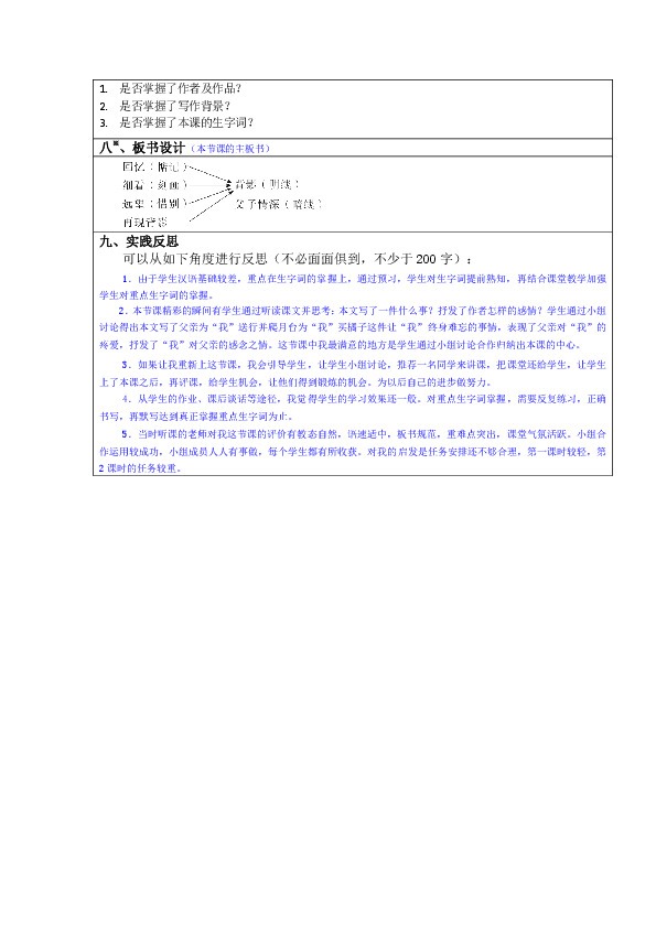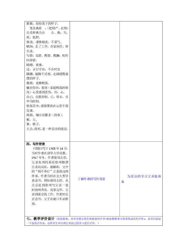 教学难点:学习在叙述和描写中抒发感情的方法,理解深沉的父子之情。