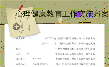 以下为《心理健康教育工作实施方案》的无排版文字预览,完整格式请下载