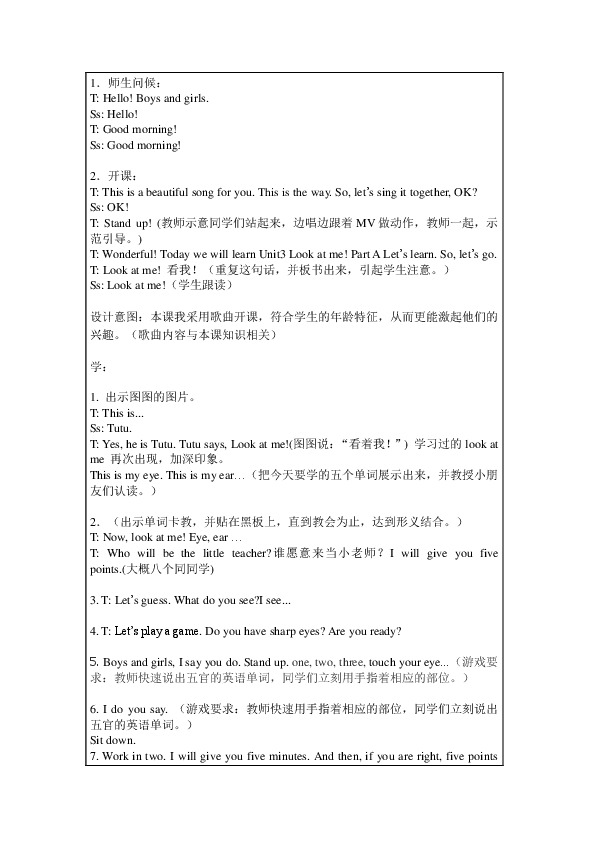 以下为《Look-at-me 教学设计方案》的无排版文字预览,完整格式请下载