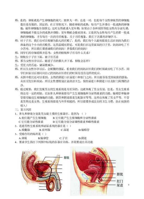 (2)通过对男女生殖系统的了解培养学生尊重异性的品质;