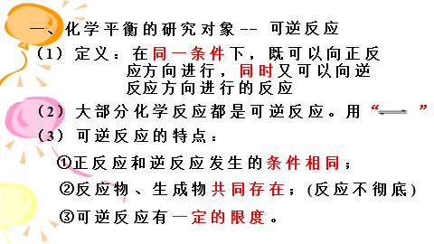 第二单元 化学反应的方向和限度化学平衡状态一、化学平衡的研究对象--(1)定义:在同一条件下,既可以向正反
