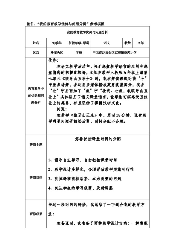 附件:“我的教育教学优势与问题分析”参考模板