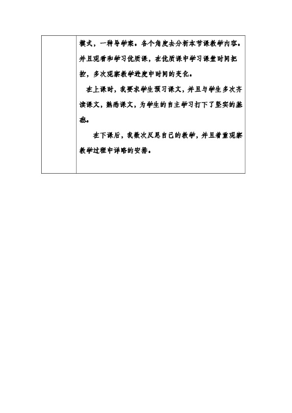 在备课时,我准备了两种教学设计方案:一种常规模式,一种导学案。各个角度去分析本节课教学内容。并且观看和学习优质课,在优质课中学习课堂时间把控,多次观察教学进度中时间的变化。