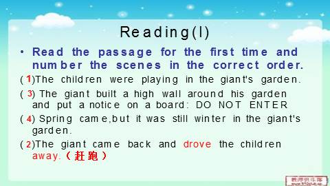 ( )The giant came back and drove the children away.(赶跑)