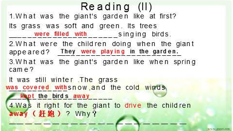 4.Was it right for the giant to drive the children away(赶跑)? Why?