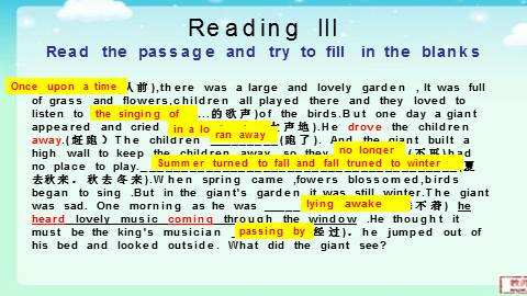 Reading IIIRead the passage and try to fill in the blanks
