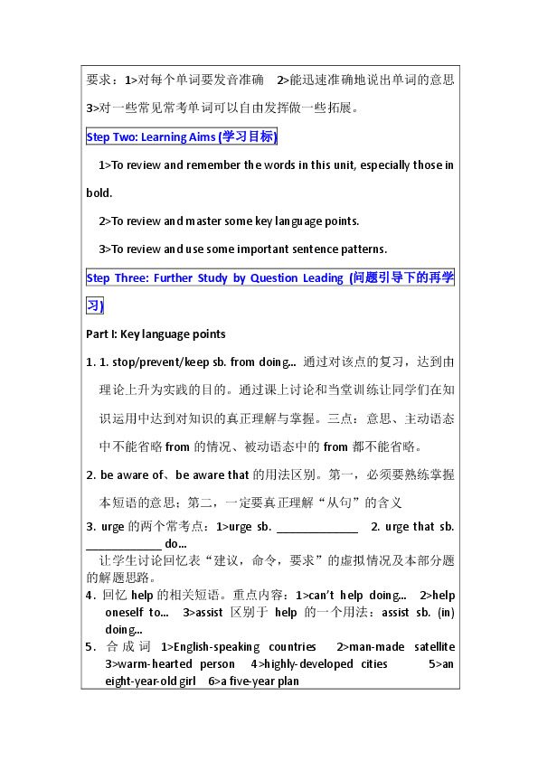 首先对本单元基础知识---单词和短语进行全面系统复习与巩固---见学案“预习检测”