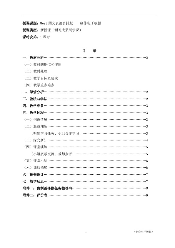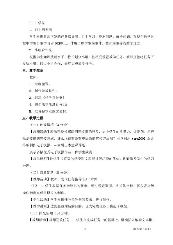 以上为《《Word图文表混合排版——制作电子板报》教学设计》的无排版文字预览,完整格式请下载