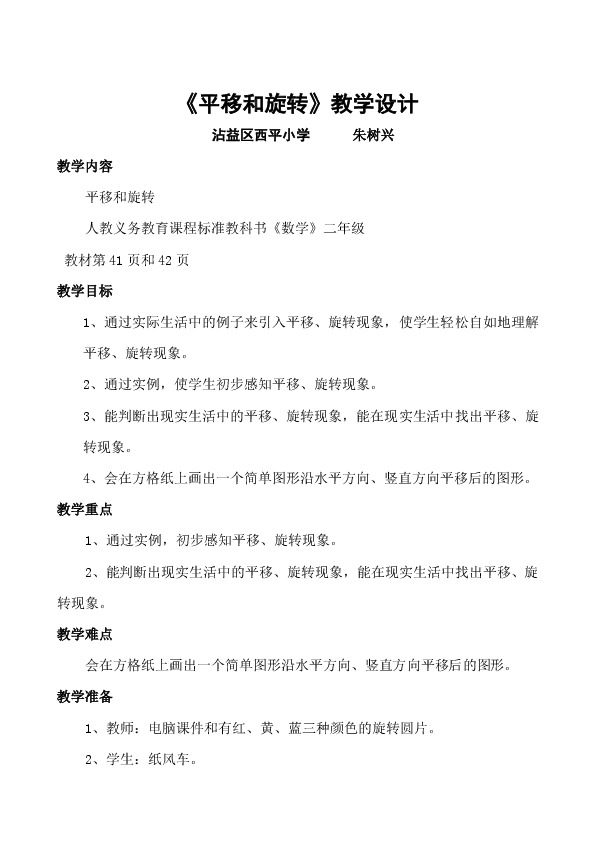 《平移和旋转》教学设计