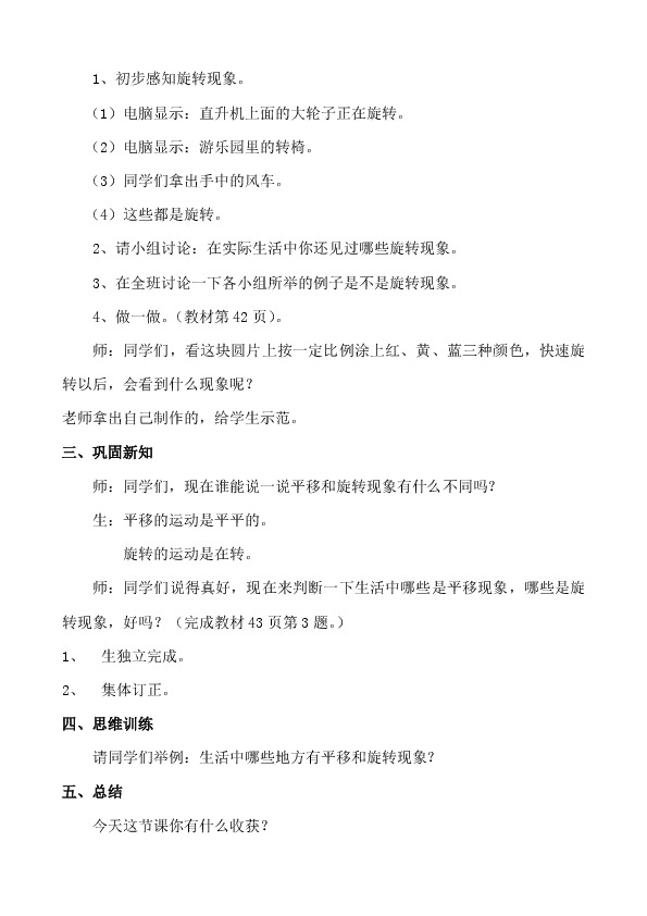 3、在全班讨论一下各小组所举的例子是不是旋转现象。