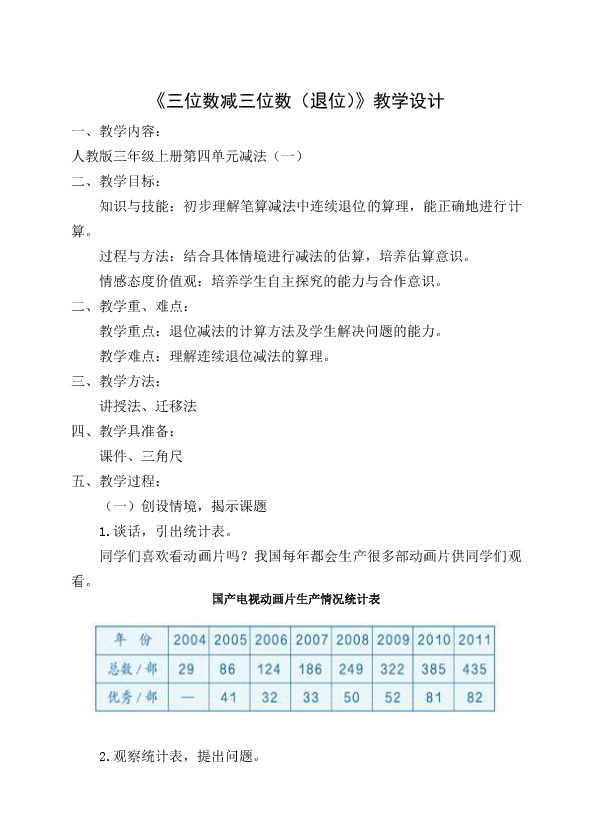 以上为《三位数减法教学设计》的无排版文字预览,完整格式请下载