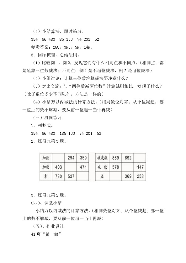 以下为《三位数减法教学设计》的无排版文字预览,完整格式请下载