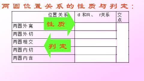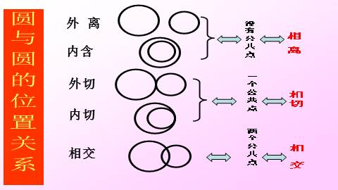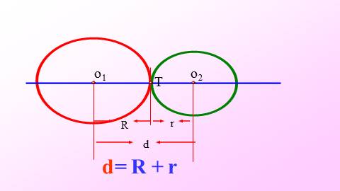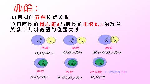 2)用两圆的圆心距d与两圆的半径R,r的数量关系来判别两圆的位置关系