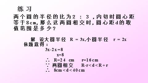 两个圆的半径的比为2 : 3 ,内切时圆心距等于8cm,那么这两圆相交时,圆心距d的取值范围是多少?