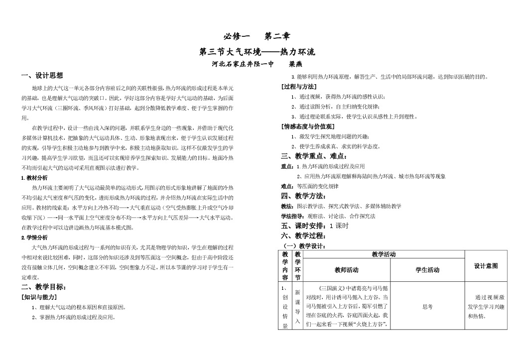 让学生能够利用热力环流的形成原理,解决生活中的实际问题,提高学生理论联系实际的能力。这也是新课标的要求之一。