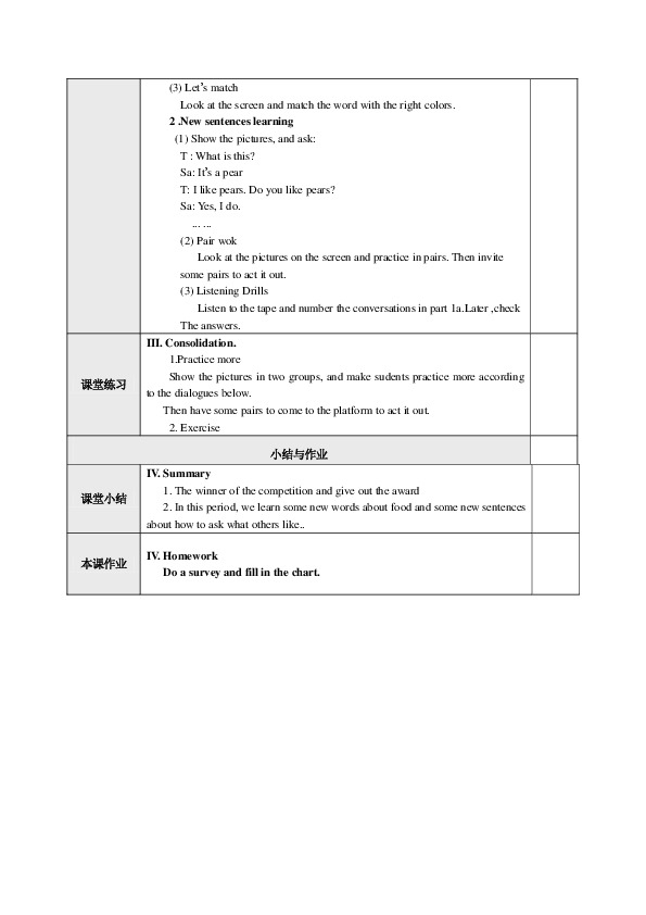 2. In this period, we learn some new words about food and some new sentences about how to ask what others like..