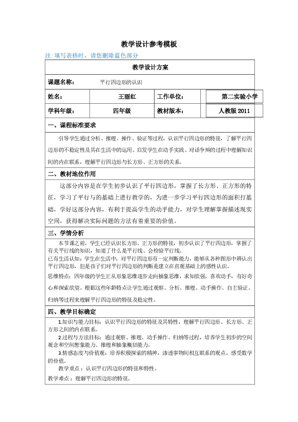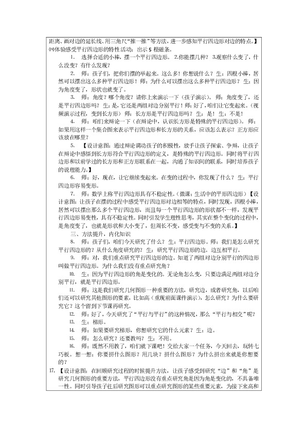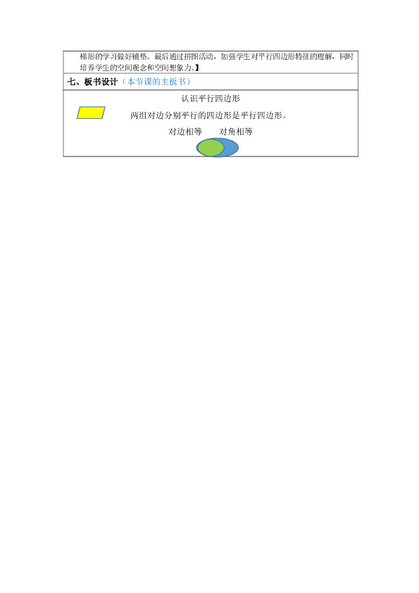 以上为《认识平行四边形教学设计》的无排版文字预览,完整格式请下载