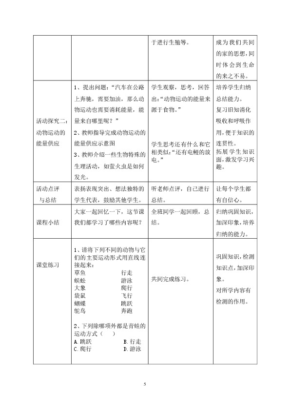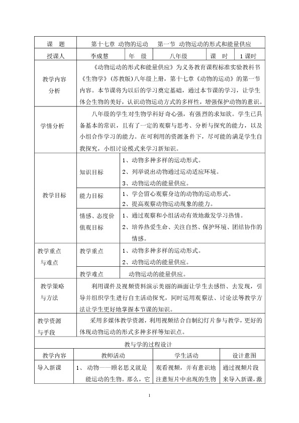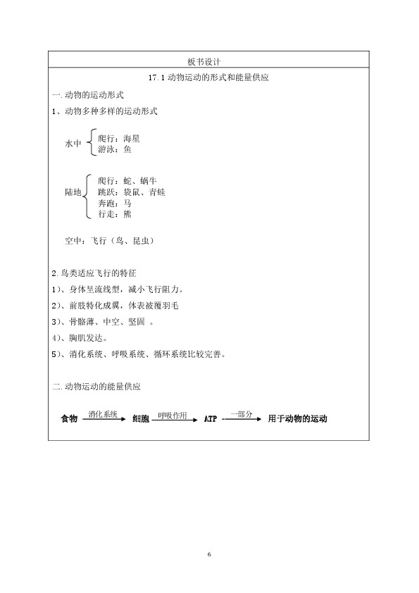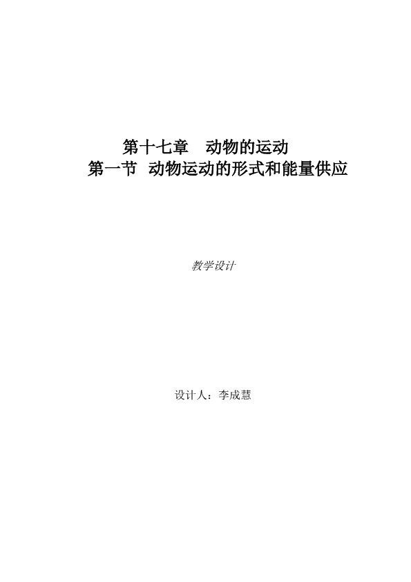 以下为《动物的运动形式和能量供应(教学设计)》的无排版文字预览,完整格式请下载