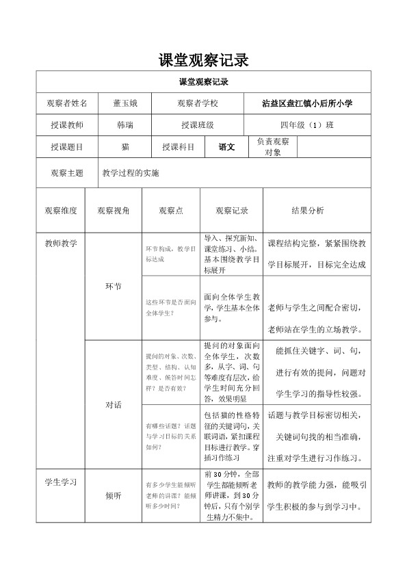 以下为《课堂观察记录》的无排版文字预览,完整格式请下载
