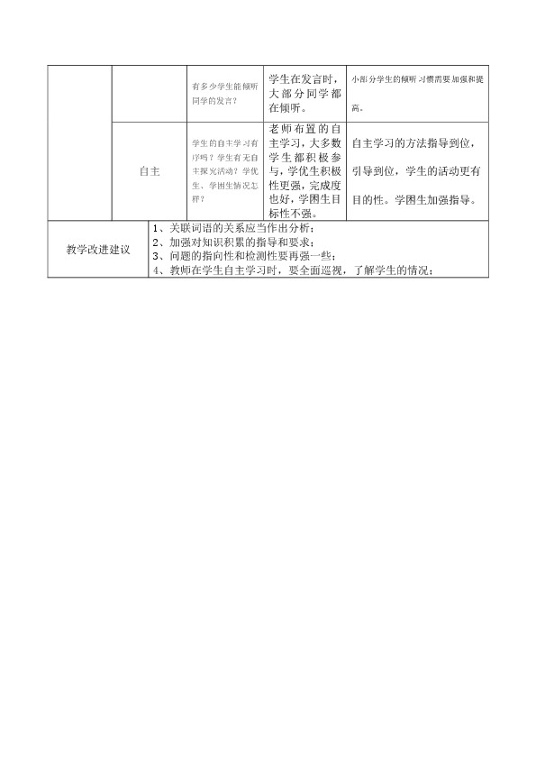 学生的自主学习有序吗?学生有无自主探究活动?学优生、学困生情况怎样?