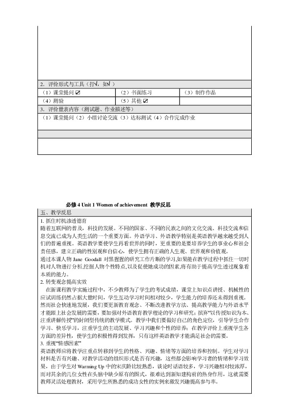 高中英语必修4. Unit 1.? 第1课时教学设计