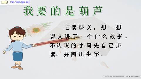 读读课文,这个人要葫芦, 他得到葫芦了吗?