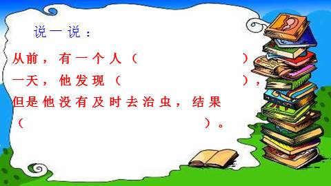 从前,有一个人( )。一天,他发现( ),但是他没有及时去治虫,结果( )。