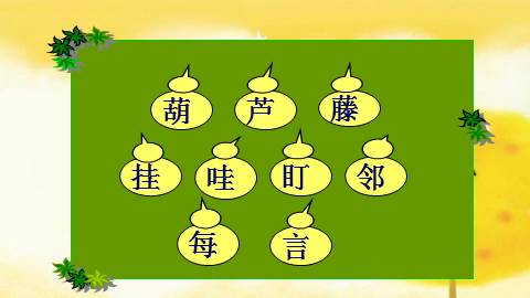 看一看葫芦叶 我是一片小小的葫芦叶, 借着太阳公公的光芒, 我能制造养分, 由葫芦藤输送给葫芦果, 让小小的葫芦果快快成长。 你们说我棒不棒?