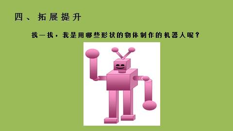 找一找,我是用哪些形状的物体制作的机器人呢?[全文已结束,注意以上仅为全文的文字预览,不包含图片和表格以及排版]