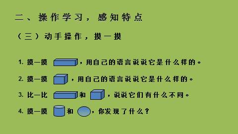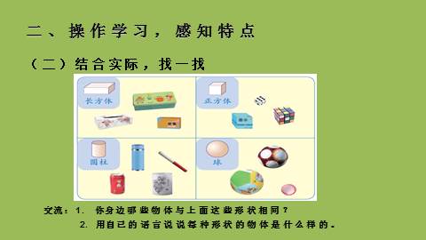 2. 用自己的语言说说每种形状的物体是什么样的。