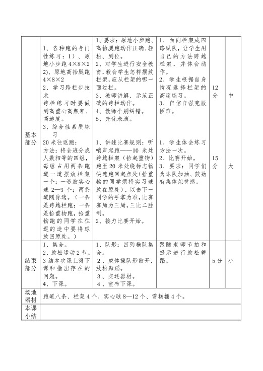 2、对学生进行安全教育,教会学生怎样摆放栏架,应从栏架的哪一面过栏。