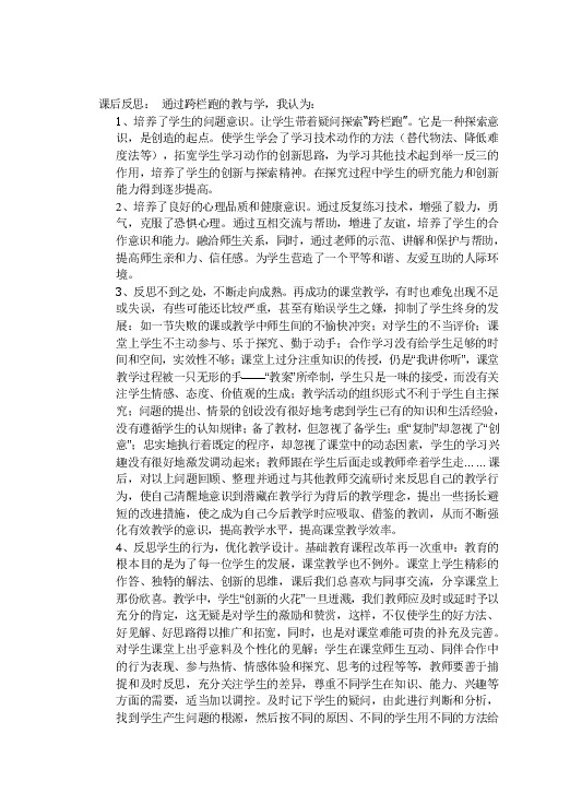 课后反思: 通过跨栏跑的教与学,我认为: ?