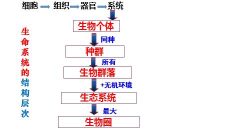 5.尝试构建生态系统的结构模型。学习目标生命系统的结构层次细胞 组织 器官 系统生物个体种群生物群落生态系统生物圈同种所有+无机环境最大判断:1、一片草地上所有的蒲公英