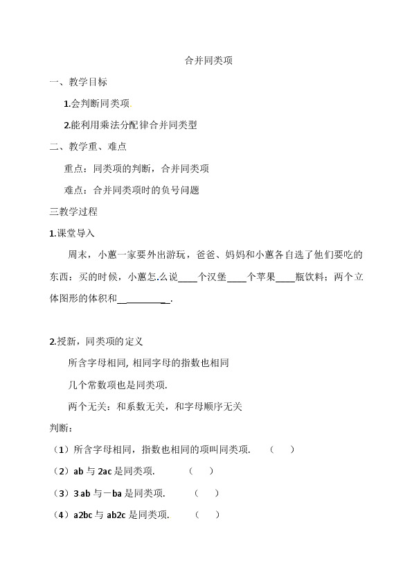以上为《3.2.1 合并同类项教案》的无排版文字预览,完整格式请下载