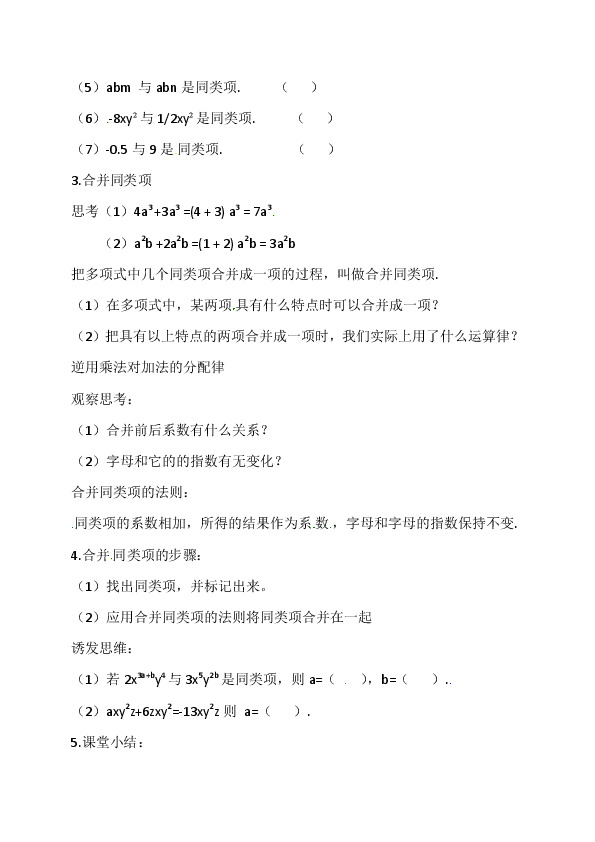 /同类项的系数相加,所得的结果作为系/数/,字母和字母的指数保持不变.
