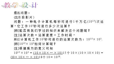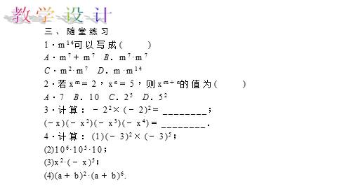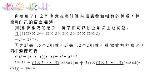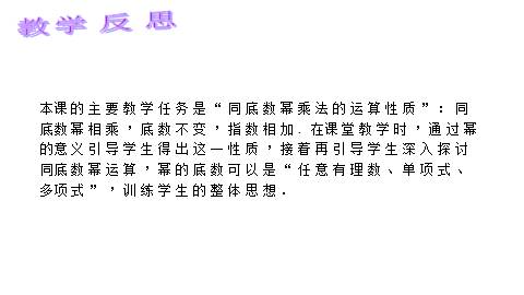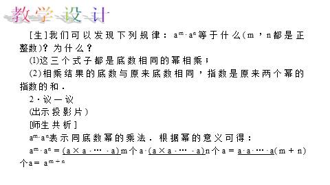 [生]在探索同底数幂乘法的性质时,进一步体会了幂的意义,了解了同底数幂乘法的运算性质.
