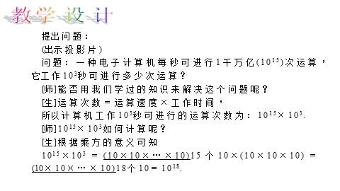 问题:一种电子计算机每秒可进行1千万亿(1015)次运算,它工作103秒可进行多少次运算?
